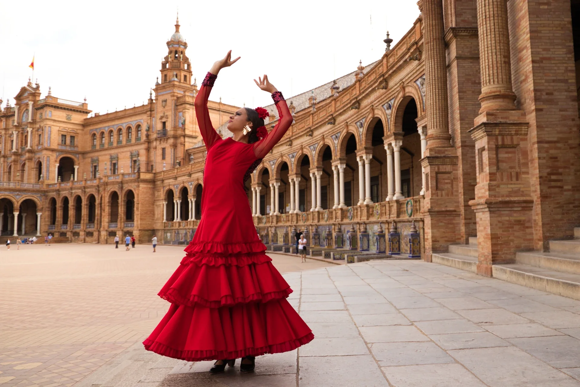 HISTORIC SPOT Walk through Seville’s picturesque Plaza de España, originally built for Seville's Ibero-American Expo at the 1929 World's Fair, the 540,000-square-foot plaza features a sprawling mosaic patio. Explore the historic Santa Cruz quarter and its magical maze of tapas, flamenco, and cafés