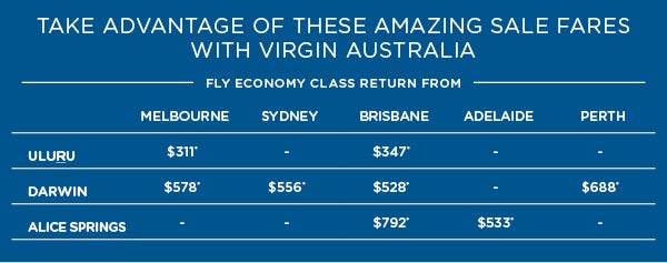 Discover the Northern Territory with exclusive fares to Uluru, Alice Springs and Darwin with Virgin Australia and Helloworld Travel!